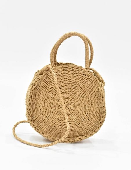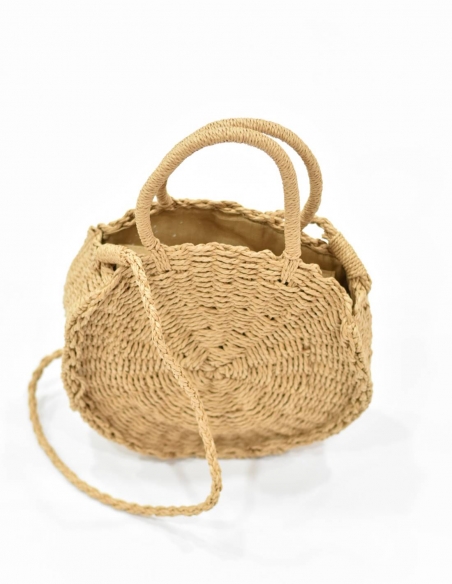 Bolso de esparto, lleva doble asa, corta y larga, para que lo lleves como quieras. Tiene forro interior en textil y cierre en cremallera.