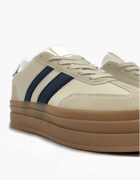 Zapatillas beige para mujer con plataforma de 4 cm. Son las deportivas del momento, cómodas y muy ligeras.