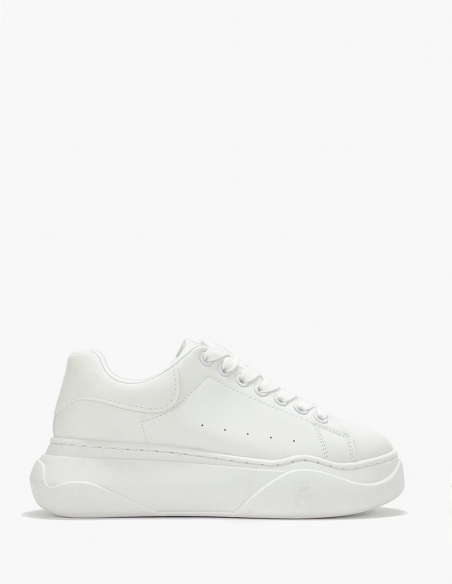 Zapatillas blancas de vestir con plataforma de goma blanca de 5 cm de altura. No pesan, esta confeccionada en piel vegana.