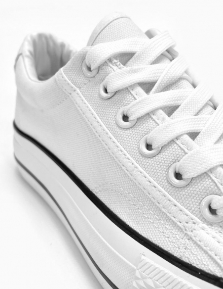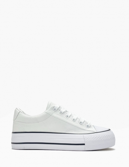 Zapatillas de lona blancas con plataforma de 3,5 cm. Suela de goma y cordones ajustables.