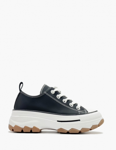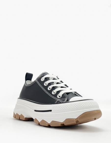 Zapatillas en polipiel de color negro con plataforma de 5 cm.