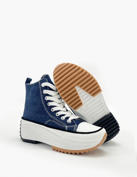 Zapatilla vaquera tipo botin con plataforma