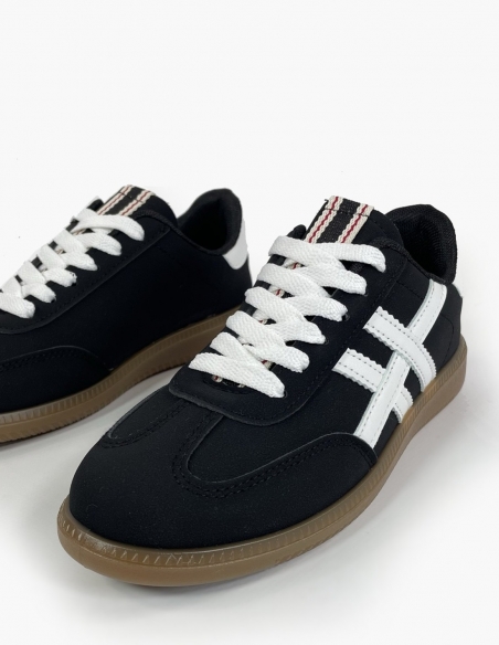 Estas deportivas de vestir negras con líneas blancas y suela antideslizante son un imprescindible para tu armario.