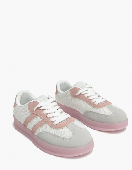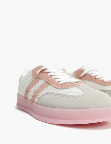 - Diseño: Zapatillas de mujer con bloques de color pastel y suela de plataforma translúcida.