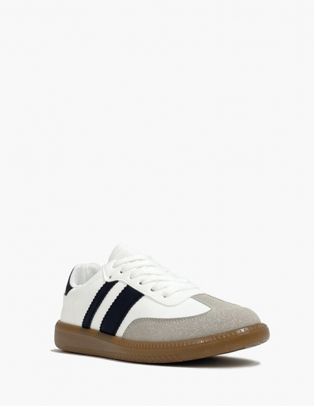 Zapatillas Deportivas Mujer Blancas Rayas Negras Suela Marrón