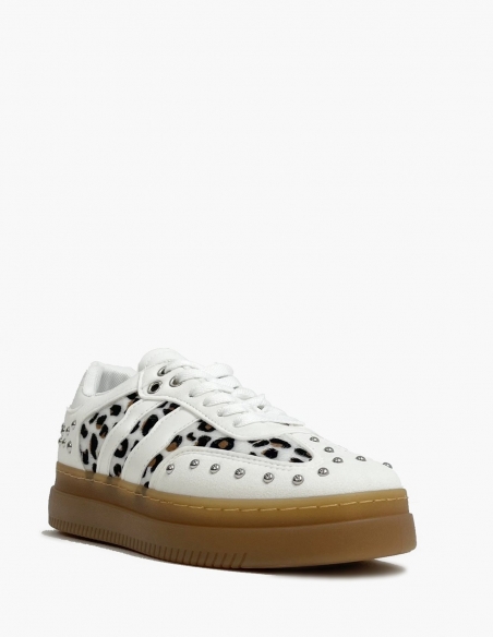 Sneakers Blancas Mujer Print Leopardo y Remaches
