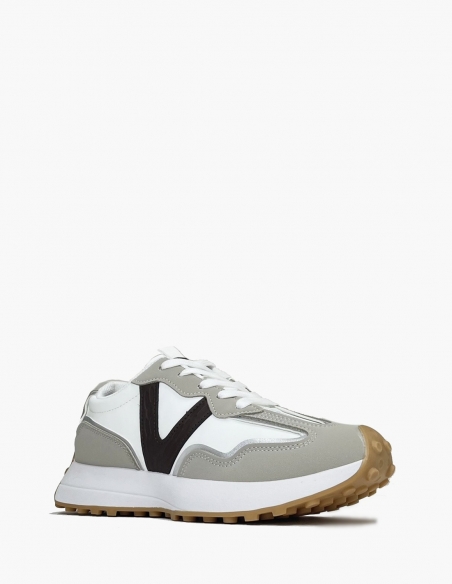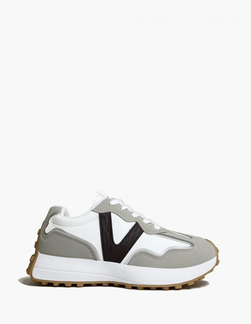 Estas zapatillas deportivas de mujer capturan la esencia del estilo retro running, actualizándolo con una paleta de colores neutros y modernos. El diseño combina una base en blanco y gris claro con detalles en un tono marrón oscuro o chocolate en el lateral. El toque final lo pone la suela de goma color caramelo, que refuerza ese aire vintage y garantiza una excelente tracción y durabilidad.