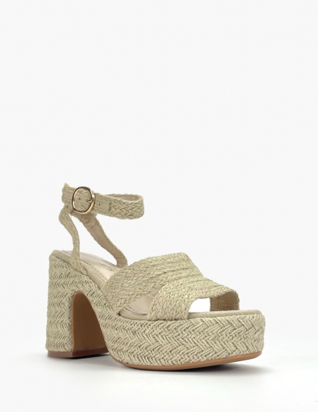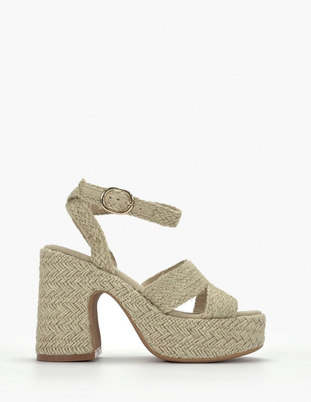 Sandalias muy estilosas para primavera y verano, con cintas en yute de color natural, se ajusta perfectamente gracias a su hebilla ajustable y no pesa nada.
